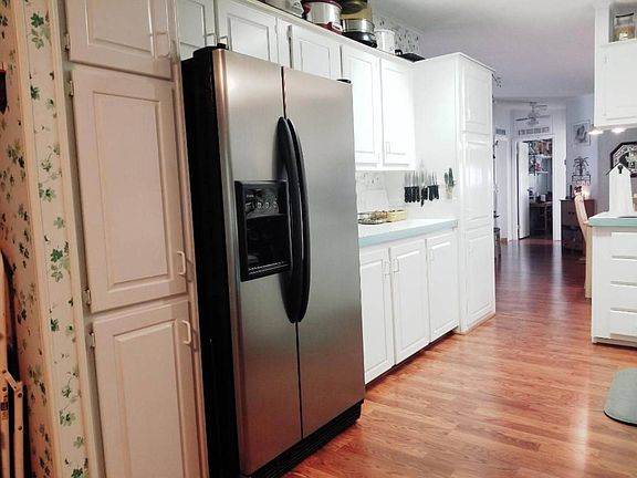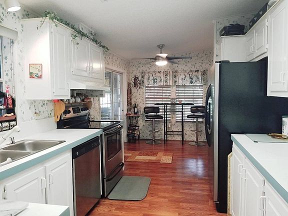 Wonderful 3 bedroom split floor plan home located in the very desirable community of Veranda Springs. Home features a light and bright kitchen with stainless steel appliances and breakfast nook. There is also a dining room open to the large living room. Master bedroom has a large closet and an en suite bathroom with double sinks, a garden tub, and walk in shower. Second and third bedrooms are super spacious. The laundry is located inside the home. There is a rear facing lanai that steps out to a covered patio area overlooking the wonderfully landscaped private backyard. There is a shed in the back and in the front for tons of storage. Updated AC, roof, hot water heater, appliances, and top of the line laminate flooring. Home comes with metal hurricane shutters for the entire house. Gorgeous park with great curb appeal and fantastic amenities as well as low lot rent. Parrish is a growing community that is still suburban, but located not far from the highways so you can get everywhere quickly. This home won't last...Call today!!!