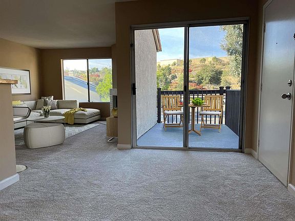 Welcome to your new home in prestigious La Costa Hills community, This delightful 1 bedroom upstairs unit boast a comfortable living space. As you step inside, you'll immediately feel the open flowing layout, designed for modern living. A cosy fireplace graces the living area, creating a warm & inviting atmosphere for you to relax & unwind. Step outside on you private balcony & soak in the views that this corner unit offers. Parking is a breeze with a convenient 1 car garage & an assigned parking. The community offers a resort-like experience with amenities that include a refreshing pool, relaxing spa, a park BBQ areas, recreation room & a top of the line gym. Your new home is not just a peaceful oases, it is also a perfectly situated for convenience, Enjoy easy freeway access, making your commute a breeze. Explore nearby shopping, & dining options providing endless entertainment choice. For nature enthusiasts, Stage Coach Park & hiking trails are within walking distance & beaches only 8 miles away, inviting you to explore the great outdoors. Unit comes equipped with refrigerator, stack-able washer & dryer. Don't miss out on this incredible opportunity; this unit won't last long in this desirable community. Schedule a viewing today and make your dream of living in La Costa Hills a reality!