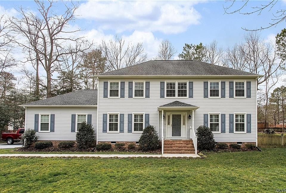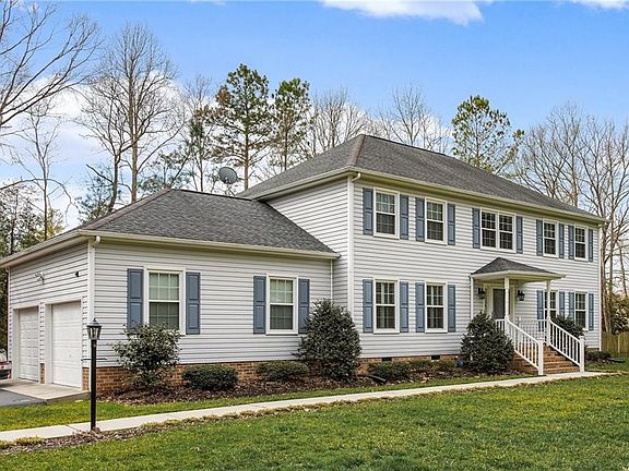 Charming 2,464 sq ft 2-story Colonial located with-in minutes to I-64. This home features 4 bedrooms, 2.5 baths, a 2 car attached side load garage and situated on .72 acres in Five Lakes Woodland Subdivision in New Kent County. Family room has a fireplace with gas logs, wainscotting and crown molding. Formal living room with wood floors. Kitchen has 9 x 12 breakfast nook, desk with built-in cabinets and a pantry. Formal dining with wood floors, crown/chair molding. Upstairs features a large master suite has 2 his/her closets -1 is a walk-in, bath with a whirlpool tub, separate shower and a double vanity. Additional features include custom blinds downstairs & plantation shutters upstairs, vinyl siding, paved driveway, 2 zone heat pump, fenced rear yard and 12 x 19 screened rear porch. Call today!! This home will not last long!