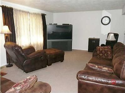 Open feel in this updated all brick ranch. Large Living Room opens to the huge Kitchen updated with newer cabinets, vinyl and black appliances including a dishwasher. Remodeled Bathroom includes a beautiful tile surround in the tub/shower, wainscoting, new flooring, vanity and paint! Vinyl windows, newer roof, GFA and electrical box. Over sized 2 car Garage, back patio and mature trees in the yard that backs up to a field. All convenient to shopping and I-69 on Anderson's south side.