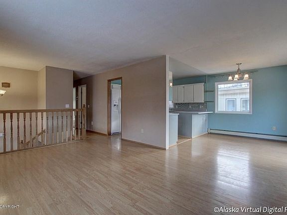 Well maintained & tastefully updated home just minutes to JBER. Liv rm w/wd FP & lam flrs. Spacious kit w/glass tile backsplash, brkfst bar open to dining area. Both bathrms w/jet tub & tile flrs. Lwr lvl w/lg family rm, 2 bdrms, BA, laundry room. Lg deck off din area for summer BBQ's. Lg back yard w/dog run. 3 blocks from schools & close to shopping, eateries & entertainment