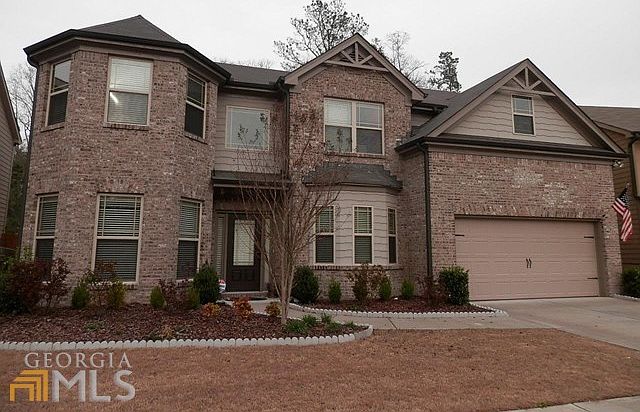 Immaculate home looks new! Open floor plan with lot of living space. Family room with hardwood floors opens onto breakfast room and large kitchen. Granite counter tops and maple cabinets. Separate formal living and dining room. Fifth bedroom is on main level with easy access to full bath. Upstairs you'll find the large media room, laundry and other bedrooms. Huge master suite includes a large walk-in closet and luxurious bath. Great details on the inside of home, but the outside is great too. Backs to wooded area for a great private backyard. Convenient to Mall of Georgia, 985, and I85.