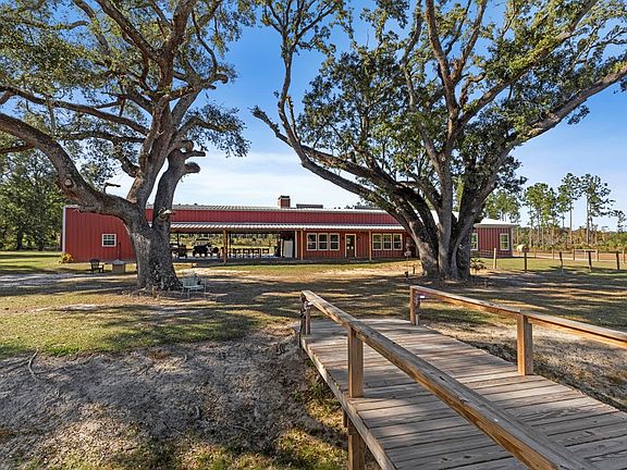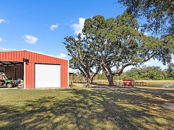 Opportunities are endless with this energy efficient barndominium situated on its own outdoor oasis. 75 acres including open land, wooded areas, and 2 bodies of water make for an amazing country retreat with so many possibilities. There is plenty of room for horses to roam freely and stocked ponds to catch fish whenever you want. With 3355 square feet of heated and cooled living space and almost 7,000 square feet under roof, there is ample room indoors as well. 4 bedrooms/3 bathrooms, large master bathroom and closet, jack and Jill bathroom, and a kitchen that overlooks the huge living area, all which have custom marble countertops. Home also has all new windows and updated electrical including led lighting and new high efficiency 4 ton 19 seer and 3 ton 19 seer HVAC units installed in 2022 as well as all new appliances. Outside is a 20x20 shop with roll up door, 20x36 equipment shed, 40x40 connected and covered patio area with a fireplace, fish cleaning station, and plenty of parking space. There is a new wooden dock on the pond to relax and enjoy the sunsets. Contact your REALTOR to schedule your showing. Parcel outlines are for illustration purposes and are only estimates. They do not depict actual property lines.