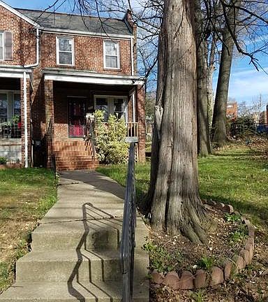 Solid brick 3BR, 1BA end rowhouse w/front porch. Curb appeal, nice features & some updates. Hardwood floors. Stainless appliances. Kitchen cabinets decent shape. Full unfinished basement with rear entrance. Central air. Great fix-up & resale potential. "AS-IS" MUST have proof of funds for "ALL CASH"