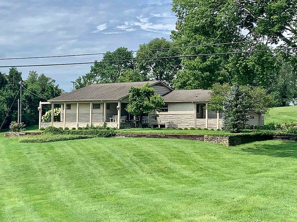 Stately ranch home situated on 3 AC within the Bedford City limits. This limestone residence offers 4 spacious bedrooms, 2 full, 1 half bath, and over 3600 sq. ft. of living space. Two fireplaces, two large living rooms, main-floor laundry as well as two kitchens add to this home's appeal. Many updates over the last several years including hardwood flooring, paint throughout, LED can lighting, and designer floor tile in the fully finished basement. Attached garage with ramp for easy accessibility to the home, and a detached 2 car garage with heat source. Agent related to seller.