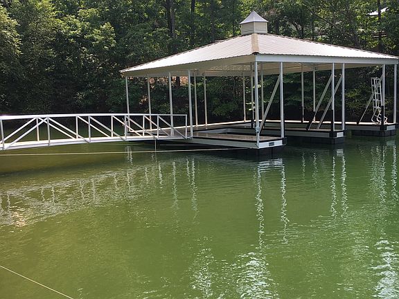 Welcome to Serenity Cove! Recently updated gated lakefront home w/saline pool, hot tub, deep water Lake Lanier access. Open floor plan, beautiful screened porch with sunset water view. Private owner's suite w/ balcony and view of water. Finished terrace level with 1BR, 1BA and rec room. 3 Car Garage and programmable remote for exterior lights & pool. Gentle walk to the lake with a brand new custom built 32'x32' double slip dock with composite decking.