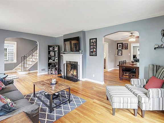 This classic brick colonial is located on a pretty tree-lined street and has been nicely updated. The welcoming living room has all the classic touches you expect with the modern conveniences you want. Younger windows let in plenty of natural light while wood floors add to the charm. A wood burning fireplace is the focal point of the room. The adjoining dining room is large enough for gatherings or every day dining. The kitchen has been thoughtfully updated (2019) with soft grey cabinetry w/ soft close feature, subway tile backsplash, quartz counters. All appliances stay in the kitchen. The bonus first floor family room has been renovated (2014) & has sliders to the deck and access to the pretty backyard. On the second floor, the owner's bedroom is large enough for a king-sized bed, has two closets and ceiling fan. Two other bedrooms on this level and an updated full bath (2018) with newer tub, tile, vanity & shower round out the second floor. A fourth bedroom and full bath and cedar closet are located on the third floor, giving you added flexibility. The basement is wonderfully updated (2019) w/ a kitchenette (sink, refrigerator and microwave), and would make a great media room, music room, etc. Other updates/features include upgraded electrical service (2020), water tank (2014), interior paint (2019), concrete driveway (2020), 2-car garage w/ loft storage. Close to Van Aken District, minutes to University Circle, this home is meant to be enjoyed from day one!