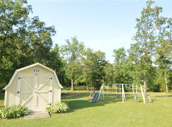 Park-like setting with mature trees; 3 BD 2 BA nestled on .64 acres with no one behind you; Concrete Driveway and a Storage Building; large deck on the side for grilling and entertaining. Zoned bedrooms and large utility room; Refrigerator remains.