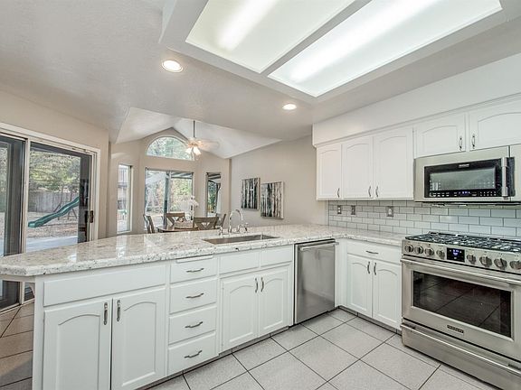 STUNNING! Recently updated w/new granite counters & new paint throughout, 2-story home, located near parks, schools, shopping and freeway access. Enjoy this +/-2306 ft. home with an open floor plan, wood laminate flooring, large family room w/cozy fireplace, breakfast nook, and eating bar. The kitchen, w/brand new granite slab counter-tops, is open to the family room, boasts a 4 burner gas stove & stainless steel appliances. Downstairs, the Owner's suite is spacious w/large soaking tub, separate shower w/brand new door, and generous walk-in closet. A second bedroom and bathroom are located down the hall as well as the laundry/utility room. Upstairs you will find two more bedrooms and a full bathroom. Outside you can entertain under your large, covered, concrete patio and enjoy the oversized backyard w/synthetic lawn, metal gates & a shed. A/C has been replaced within the last 5 years. Call/text today to experience this home for yourself.