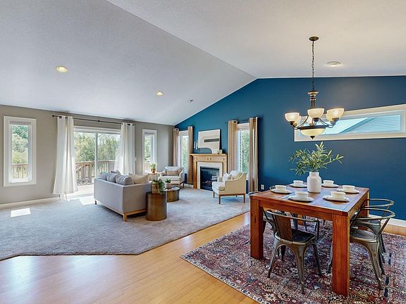 What an amazing & like new, ranch style, heated 3 car garage, 4 bed, 3 bath home. This solid built home with a walk-out basement has so much to offer. Starting with the large foyer w/closet & sitting area, vaulted ceilings in living & dining room, gas fireplace, hardwood floors, open kitchen w/ maple cabinets & stainless steel appliances, main floor primary bedroom & bathroom, jetted tubs, lots of windows letting plenty of light in, large family room, exercise/storage room, heated garage, large deck and patio & much more. This home also backs up to the city & state protected lands for privacy.