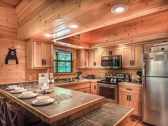 Beautiful home located in Brookstone Village right off the Pigeon Forge Parkway. Community Pool and Basketball Court Available! This roomy 6 bedroom, 5 bath home. This beautiful cabin is located only a half mile off the Pigeon Forge Parkway. It has 3 stories and is large enough for the whole family. The living room features a Stacked Stone Fireplace and open living kitchen and dining area. The kitchen has French door access to the back porch with the gas grill, and multiple sitting areas. There is one Queen Suite on the main level with shared bath access. Upstairs, are 3 King bedrooms and 2 baths. 1 King master suite with a private bath and Jacuzzi; 2 King bedrooms with shared bath and French Door access to an upper level deck. The lower level features 2 additional Queen suites w private baths, Pool table, and home theater with seating for 10. There is French door access to the 8 person hot tub and covered porch sitting area. This home is located 3 minutes from all area attractions, shopping and dining. Don't miss the chance to own this piece of the Smoky Mountains!
