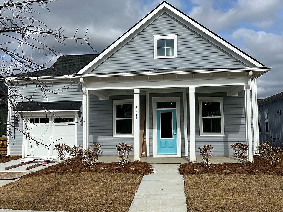 Welcome to The Cottages at Carolina Park. This is the Jenkins! The two-story version of the Jenkins floor plan features a second-floor bonus loft as well as a separate guest suite. Upon entry, you are immediately greeted by an open concept great room, eat-in and kitchen all under 10-foot ceilings. Your eye is drawn to the stylish gourmet kitchen complete with grey cabinets and white quartz countertops. The owner's suite with connecting covered porch is located just down the hall with dual walk-in closets and a boxed ceiling that gives the bedroom even more height. Owners are also greeted by a striking private en-suite bathroom complete with zero-entry shower, water closet and dual vanities. The secondary bedroom is nearby with private access to their own guest bathroom. Both bedrooms are conveniently located near the laundry room and additional coat closet. Luxury Vinyl Plank flooring finishes the look throughout the first floor even in the bedrooms. A spacious guest-suite and private upstairs bathroom are wonderful for visiting friends and family. A one-car garage completes this floor plan. A powder room is tucked away under the stairs in lieu of the storage closet. A one-car garage completes this floor plan.