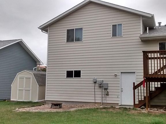 * Recent upgrade to kitchen. Ceramic counter top and backsplash installed. * Recent upgrade to main bathroom. Porcelain tile surround, clear glass shower doors. * Washer, dryer, dishwasher and fridge provided. * Central air and forced air gas heating. (Solar backup available to operate furnace in emergency blackout.) * Large fenced back yard with mature evergreens. * Oversized two car garage plus off street parking for two cars in driveway. * 8' x 10' storage shed with electrical outlet opens to back yard. * Located on a quiet street far from major traffic lanes. * Five minutes from Monument Hospital serving most of western SD. * 10 minutes from down town Rapid City metropolitan area. (Population 100,000 +) * 15 minutes from Canyon Lake Park. * 30 minutes from Mt. Rushmore National Memorial. * Several lakes, streams and recreational areas within a 30 minute drive. (Great fishing.) * No smoking inside house. * Grills allowed only on grass or pad in back yard. No grills on wooden deck. * Fire pit included - but can only be used on pad by back door to garage. * Tenant is responsible for lawn care and maintenance, including mowing, watering and weed control. (Owner will provide some weed control in spring and fall.) * Small dog is negotiable. There would be an additional pet in resident fee added to rent. Tenant would be responsible to repair any damage done by pet. * A third parking space is available for a camper or boat during summer months. Must be taken to storage in winter.