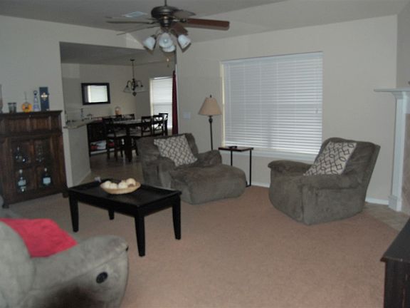 Like new 4bed room 2bath 2 car garage brick home. Open floor plan, kitchen with granite countertops and pantry, large utility room, decorator light package, pre-wired for telephone ad tv. separate shower and tub in master bath, walk in closet, gas fire place.