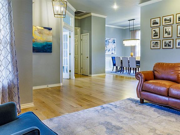 WOW! Incredible opportunity to be in one of the absolute best locations in town! This updated home has 4 bedrooms, 3 full baths, an office, 2 living and 2 dining areas! It's located in the desirable Hunters Pointe addition with a beautiful pond, neighborhood park and access directly to Mitch Park from the neighborhood! It is right around the corner from Uptown, shopping, and some of the newest restaurants in town. As soon as you approach the home, you'll instantly fall in love with its cottage-like front porch, bench swing, landscaping, updated shutters, and glass front door. When you enter the house, you'll notice this house is unique. It has real hardwood floors throughout the main living areas, office, primary bedroom as well as the 4th bedroom. The 4th bedroom and a full bath are separate from the primary suite for added privacy for guests or a 2nd office area. There is great attention to detail in the dining room with its wainscoting and designer light fixture, there are new ceiling fans throughout. This home has incredible space, boasting 4 bedrooms, 3 bathrooms, a study, large dining room, and two living areas. Some additional updates to note are fresh paint (with trim-work!) new tile in laundry and the 2 guest bathrooms plus so much more! The refrigerator will stay. Come see this beautiful home in a desired location! Buyer to verify all information including schools and SF.