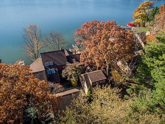 LIVING IS EASY in this generously proportioned contemporary Condo with lake views! The open floor plan encompasses a vaulted great room with gas fireplace, 4 sliding doors for spectacular water views and large dining area. The sleek and stylish kitchen features pickled cabinets with interior lighting, custom marble floor and matching white appliances. There are 2 bedrooms on the main floor, including a spacious master with vaulted ceiling, double doors that open to a deck and a large walk-in closet that leads to the master bathroom. A convenient 1st floor laundry and nicely updated main bathroom complete the main level. Upstairs, you'll find the 3rd bedroom with built-ins, hardwood floor and exposed beams. There's also a large loft that overlooks the great room and features a knotty pine ceiling with skylights plus a bonus room with walk-in closet! With minimal yard work to do, you can spend your time enjoying views of the lake from your composite deck that's just a few steps away from your private dock with 3 slips! Updates within the last 5 yrs. include the furnace, A/C, & water heater. Make this home your year round retreat with private dock, access to the clubhouse and tennis courts!