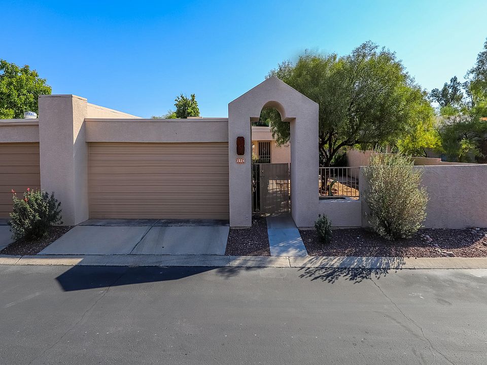 Location, Location, Location! Close to everything, and still able to enjoy a stunning mountain view. This townhouse is adjacent to the Rillito River Walk- a beautiful walking path with unobstructed mountain views. Enjoy the sparkling community pool without having to maintain it! This home features a 2 car garage, and gated courtyard front yard that is big enough to enjoy some private outdoor space, but small enough to be very low maintenance. The double block adjoining wall between units means you won't have to worry about hearing your neighbors. This split floor plan can easily be converted to a 3rd bedroom, or, enjoy the open concept with a den that it is currently set up as. High ceilings help this home live bigger than the square footage. Great, affordable, easy maintenance home