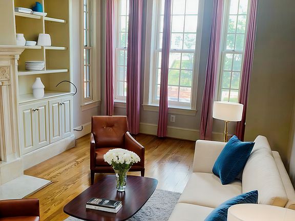 Very large and elegant Georgetown townhouse in friendly and convenient Cloisters community. The home boasts over 3600 sq ft of living space, five bedrooms, 3.5 baths, four wood burning fireplaces, and two dedicated parking spaces with electric vehicle charging hookup. Minutes by walking to Georgetown Hospital and University, and all the Wisconsin and M St. shops and restaurants. Quality construction includes custom built-in bookshelves and cabinets that were installed in 2017 in the family room and upstairs landing, along with a new roof. New deck and flooring in basement, carpeting on stairs, and updates to bathrooms. Two large skylights bathe the top floor in natural sunlight. View on Washington monument from top floor. Tenant is responsible for electric, gas, water, and cable.