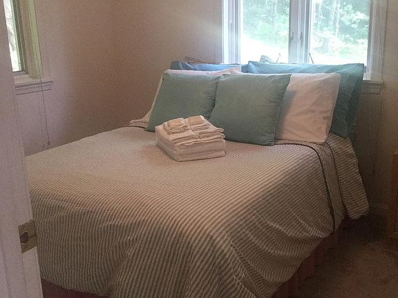 Beautifull Lake Fairlee rental available furnished for short or long term rental. Peaceful get away to share with you and your family. Work remotely in this gorgeous home with views overlooking Lake Fairlee. Home includes furnishings so is move in ready. Downstairs level includes kitchen with open floor plan to living room. Full bathroom, and bedroom with queen bed. Upstairs has a full bathroom with his and her sinks, the master bedroom with queen bed, and also kids rooms with 2 twin beds. Utilities are not included. Tenant pays electric, and internet. Home has electric heat.