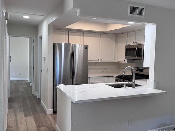 HOTTEST NEW CARMEL VALLEY RENTAL OPPORTUNITY! Light and Bright 2 bed/2 bath bed end unit in the highly desirable East Bluff complex in the heart of Carmel Valley!! Just renovated from top to bottom with new wide plank flooring through-out, Quartzite countertops, vanities, modern tiled bathrooms, fixtures and fireplace surround and ready for immediate occupancy! Additionally, a cozy gas fireplace for those cool evenings, and only 1 neighbor! Condo also features very spacious detached 2 car garage with TONS storage and a welcoming balcony and an additional outdoor storage closet. Washer/dryer in unit.Walk to Solana Highlands Elementary, One Paseo, Del Mar Highlands, multiple parks, and enjoy the sweet life Carmel Valley has to offer! Wonderful community amenities including heated pool/spa! Hurry and be the lucky one to call this HOME!
