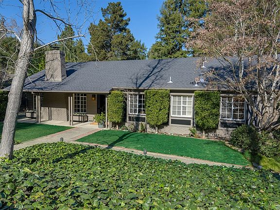 CLASSIC MARCHANT BEAUTY The combination of this lovely traditional home on almost a half, level, acre and quiet, rural, cul-de-sac neighborhood on a private road creates a very special welcome home. With an abundance of indoor-outdoor flow and potential for grand or intimate entertaining, this home and property provides California living at its best. The gracious entry with dark slate leads to a single-level, easy-flow floor plan perfect for family living. The entire back of the house opens to a large, back yard of pool, patio, decks, and private grassy yard, all accented with a variety of plantings including a profusion of camellias and a dramatic arbor dripping with clematis, against a backdrop of redwoods . The heart of the home is the spacious and sunny eat-in kitchen/family room combination with soaring ceilings, skylights, fireplace, plank hardwood floors, ample storage, wall-to-wall bar and floor-to-ceiling windows and glass sliding doors opening to the amazing backyard. The inviting living room features a brick-framed fireplace, exquisite vaulted, beamed ceiling, plank hardwood floors and windows overlooking the front yard lawn and garden as well as the side yard dedicated rose garden. The plank floors lead to the dining area, also with sliding glass doors opening to the patio and pool. The bedroom wing is almost all hardwood floors. At the end of the hall is the spacious master suite which includes a delightful , carpeted sitting room with fireplace and opens to the back yard. The master bathroom has been recreated to include a tub, separate shower, wall of closets and beautiful built-in cabinets. There are three more good-sized bedroom, one of which is wood-paneled and makes a perfect office. Other features include indirect lighting throughout, two-zone heating and air conditioning, an attached two-car garage, large laundry room with toilet and access to back yard and tons of storage.
