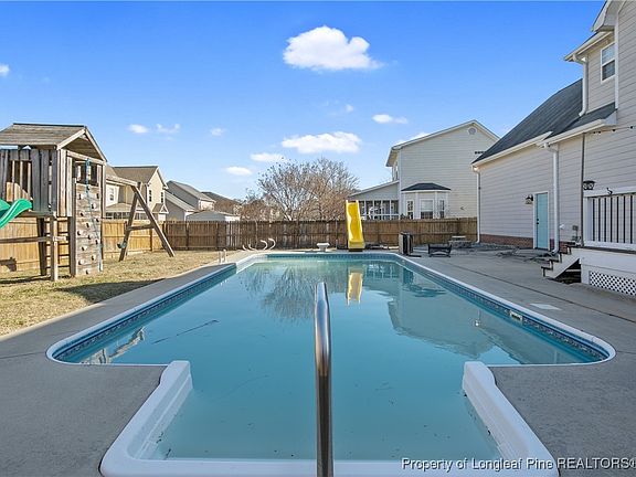 JACK BRITT! POOL! BEAUTIFUL FIREPLACE! Welcome Home To This Lovely Retreat. Inside Is a 2 Story Foyer Flanked By a Formal Dinning Room Featuring Trey Ceilings & A Bright Spacious Office/Den Showcasing French Doors. Beyond the Foyer is the Cozy Livingroom With a Beautiful Fireplace, Casual Dinning, Kitchen w/ Peninsula Island & Stainless Steel Appliances. As Well As a Half Bath & Laundry. Moving Upstairs There's a Generous Landing Leading To 3 Bedrooms & 2 Full Baths. The Primary Suite Is a Welcoming Sanctuary Featuring Trey Ceilings & Big Windows. The Bath Has Separate Sinks, Jetted Tub, Stand-Alone Shower, & Walk-In Closet. There Are Two Other Bedrooms & An Expansive Bonus Room w/ Closet. Perfect For a Media/Game Room, 4th Bedroom & Much More! Outside is the POOL! A Large Deck, Concrete Patio, Fire Pit Area, & Privacy Fence Add To Your Back Yard Oasis. Plenty of Space For BBQ's, Pool Lounges, Patio Set, & Outdoor Dinning. Convenient to Fort Liberty, Shopping & Dinning. Make Her Yours!