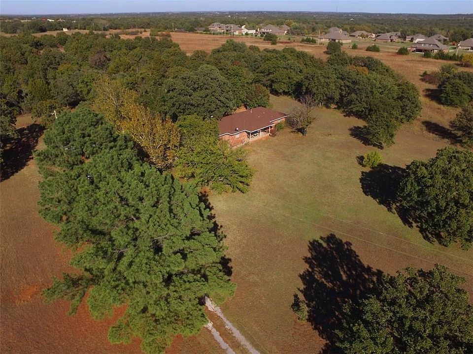 Gorgeous 25 acres! This type of property is rarely available...beautiful mature trees...open meadows...great location on a paved road...Edmond schools...endless possibilities to build your dream home or divide into a private neighborhood. The well-constructed home is ready for updating with quality blonde woodwork, a large utility room and open living areas. The well pump is about a year old and one bathroom is handicap accessible. A sunroom on the back has a window air conditioner and is included in the tax record's sq. ft. The carport and large barn are near the house which is located in one corner of the property.