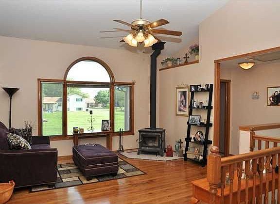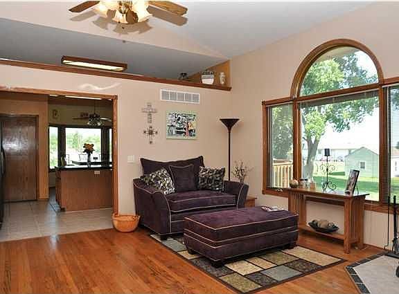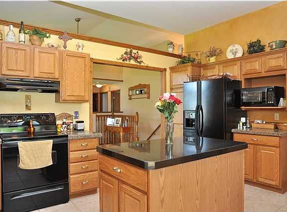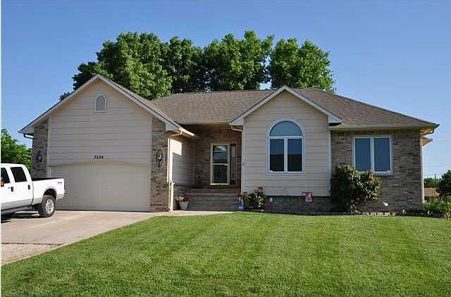 Beautiful ranch style home on a large, just under half an acre nicely landscaped lot. Mature trees with rope swings for those summer days with the children. Granite counter tops in the kitchen, and nice tile work. Glass top kitchen island. The frig stays! Separate laundry room off the kitchen area, so you don't have to walk over laundry coming in from the garage. Real wood stove in the living room with hardwood floors. The master has a large walk-in closet, full bath with tub/shower combo, dual vanities with makeup area in the bath. Two additional bedrooms and full bath on the main floor with double closets. Huge basement rec room (15x41) with view out windows. 1 bedroom downstairs. There is a rough in bath ready to be finished in the basement. Huge storage area in the basement, some of which can be finished for an office or workout area. This home is in the desirable Haysville schools.