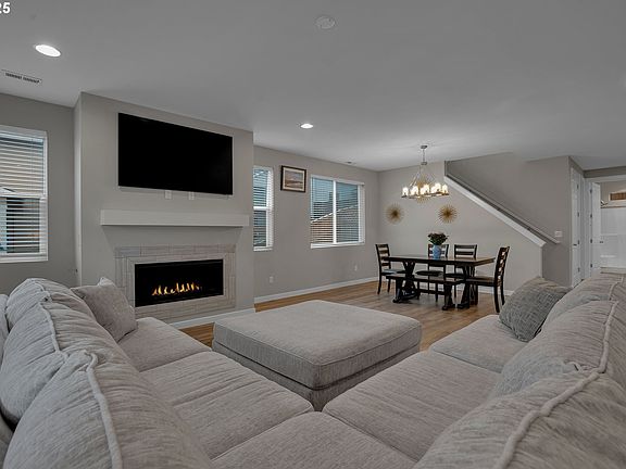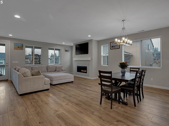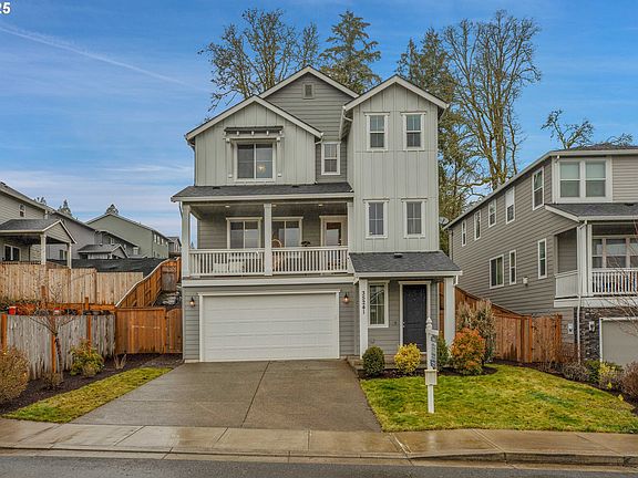 Beautifully designed 2928 sqft, 5-bedroom, 3-bathroom newer construction home offers comfort and style. The desirable floorplan features a bedroom and full bath on the main level, perfect for work or guests. Modern expansive great room with luxury vinyl planks through the main level, an abundance of windows, and high ceilings. The elegant fireplace in the generously sized living room and covered-balcony access provide an inviting atmosphere for entertaining or relaxing. The stylish open-concept kitchen is a chef's dream, with an oversized island, stainless steel appliances, quartz countertops, a pantry, and access to the back-covered patio, making it ideal for gatherings. Upstairs, you'll find 4 spacious bedrooms, including a luxurious primary suite with large double walk-in closets, and an oversized private en-suite bath with double sinks. Conveniently located upstairs laundry room, plumbed for a sink. The backyard offers new sod, a covered patio, and a fully fenced yard that offers a peaceful retreat. Enjoy the peaceful neighborhood while being close to everything you need, Willamette River, including a variety of parks, and local shops. With just a short drive to Portland. No HOA. Don’t miss this opportunity to make this home yours!