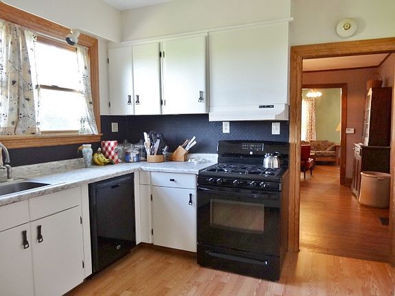 Acreage close to town. 4 Bedrooms, 1.5 updated bathrooms, hardwood floors, many original built-ins, large dining room, spacious kitchen with many white cabinets and pantry, newer poured concrete basement with bath stub for future finish, additional room with slider to large deck with great views, 24x24 garage, 1.11 gross acres.