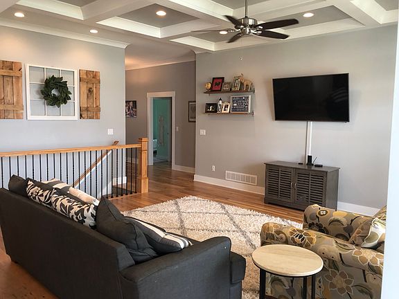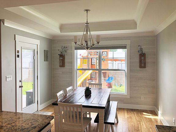 Great location off Charlestown Road! The exterior features hardie board and stone. Inside you will be welcomed by an open floor plan, coffered ceiling, and tons of natural light. The kitchen has granite countertops and soft close cabinets and drawers. The master boasts a shiplap accent wall/ceiling with floating nightstands and built in wall sconces! Fenced in yard and covered patio! All appliances stay including washer and dryer. Unfinished basement that is partially framed and roughed in for a bathroom. CALL TODAY!