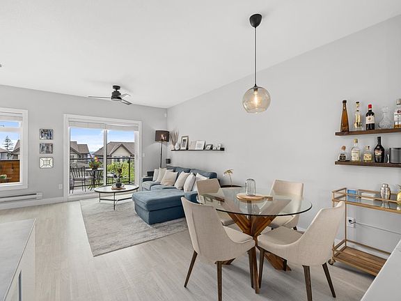 Beautiful townhome in the picturesque Smiling Creek neighbourhood on Burke Mountain. Enjoy panoramic south-facing views from three patios, including a large patio off the master bedroom. Large den downstairs big enough to be used as a fourth bedroom, home office, or home gym. This like-new townhome has many extra upgrades including an upgraded pantry, added ceiling fans, and new light fixtures throughout the home. Kitchen boasts beautiful black hardware, Krause faucet, like-new stainless-steel appliances, and extra-large cabinets for lots of extra storage space. Surrounded by quiet walking trails, multiple parks, and a quick walk to Smiling Creek Elementary.