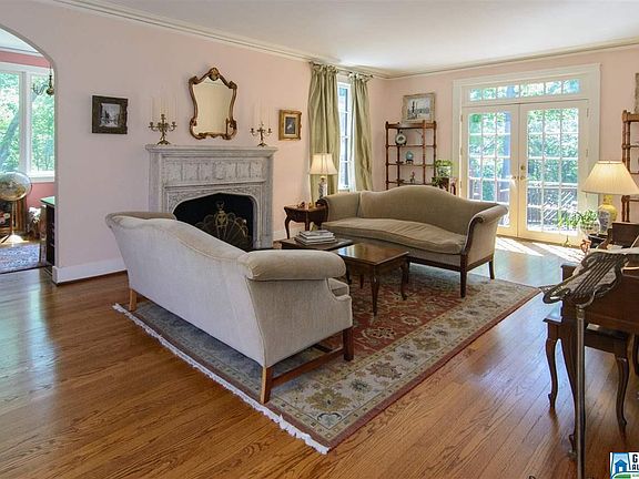Wonderful Redmont historic Tudor located in prime location! Home has stunning architectural features original to home. Boasts tons of character & great living space. Main level includes foyer, living room w/French doors to backyard & a stunning original limestone fireplace, sunroom w/French doors leading to front porch, & gracious formal dining room. Kitchen w/granite countertops & stainless appliances w/breakfast eating area. Den/family room addition on back of home architecturally looks like it always belonged, allowing a ton of natural light. Hardwood floors throughout. Powder room completes first floor. Wonderful staircase w/original iron railing leads to beautiful arched second level hallway leading to four gracious bedrooms. Master suite w/gracious master bath addition & large his & hers walk-in custom closets. Tons of closet space throughout house. Two-car garage w/additional carport for third car. Space over garage w/bath perfect for guest suite/office/artists studio. Lovely!