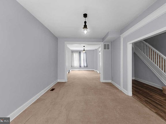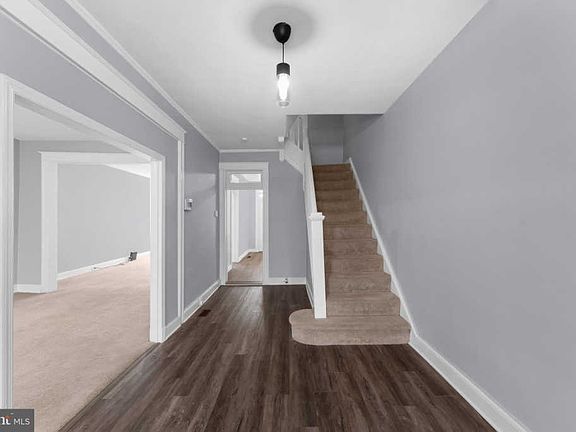 Located in the Hunting Ridge Historic District, this full-featured rowhome offers 3 finished levels, 3 to 4 bedrooms, and 2 full baths. A fenced front yard leads to an iconic covered front porch inviting you and your guests into this home presenting a foyer entry, freshly painted interiors, new flooring, a spacious living room, and a light-filled dining room with a modern light fixture. Fully appointed, the kitchen offers classic raised panel cabinetry, sleek counters, a full appliance package, and a walkout to the grill patio and fenced backyard. Enjoy extra living space in the walk-up lower level finished with a family room, a full bath, additional storage, and a bonus room ideal as a fourth bedroom. Conveniently located near shopping, dining, and commuter routes with easy access to downtown Baltimore.