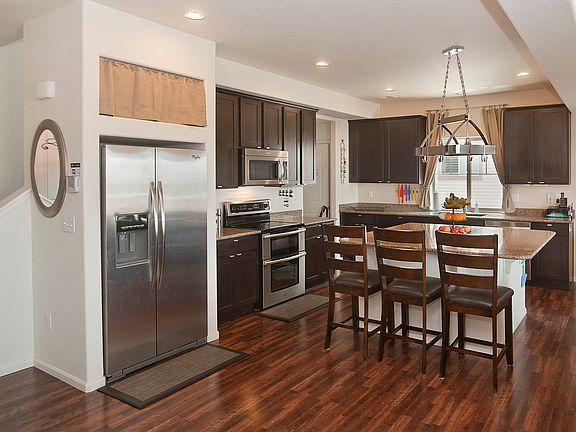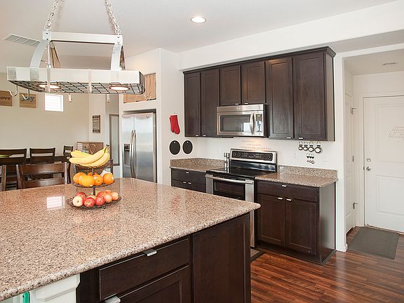 This better than new Oakwood Home features 5 beds, 4 baths, a finished walk-out basement and a three car garage. The views from the master suite are incredible! And you'll love the spacious gourmet kitchen with granite slab counters, 42" maple cabinets w/ crown molding, stainless appliances, a huge island, and generous eat-in space. That finished walk-out basement I mentioned has a huge rec. room, a bedroom, and a full bath. Located a block away from Bison Park and Clear Sky Elementary, there's easy access to trails, dining, shopping, and more. This one has everything you've been looking for, come see it today!