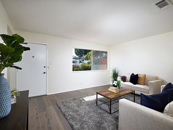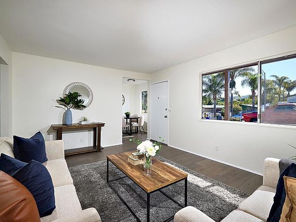 Gorgeous remodeled twinhome in fantastic West San Marcos location. Great floorplan with 2 bedrooms plus a bonus room perfect for an office. Brand new kitchen with white shaker style cabinets, stainless steel appliances, and beautiful granite counters. New laminate flooring and new carpet. Refreshed bathroom with new fixtures, hardware, mirror, lights, and refinished bath/tub enclosure. Fresh interior paint with all popcorn ceilings removed. Inside laundry with new storage cabinets. Single car garage with new roll up garage door. Newer water heater and newer exterior paint. Ultra-private backyard with loads of fruit trees – orange, apricot, plum, lemon, pomegranate, custard apple, guava, and avocado. Lives like a detached home with only the garage sharing a wall. Quick freeway access and minutes to Palomar College, Cal State San Marcos, and San Marcos High School. *Square feet includes unpermitted bonus room of approx. 189 sq ft. added by previous owner.