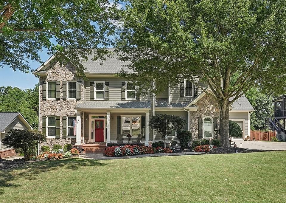 PRICE ADJUSTMENT! Welcome to 3525 Horizon Court, an exquisite residence located in the prestigious Three Chimneys Farm neighborhood in South Forsyth. From the moment you arrive, the home’s inviting covered front porch and three-car garage set the tone for the elegance within. Step inside to discover gleaming hardwood floors throughout the main level and an airy, open floorplan designed with both sophistication and livability in mind. The formal dining room and front room—perfect as a refined study or sitting room—flow seamlessly into the expansive family room, where a striking coffered ceiling, built in bookcases, and wall of windows bathe the space in natural light. The kitchen features soaring ceilings, a central island, double ovens, a wet bar for effortless entertaining, and a spacious breakfast area. Just beyond, a covered porch overlooks the professionally landscaped, fenced backyard, offering a serene retreat with lush views. Outdoor living is elevated with a private hot tub on the stone patio and the rare convenience of direct access through your backyard gate to the neighborhood playground, blending relaxation with family-friendly amenities. Upstairs, a custom-built loft office or homework station adds versatility, while the oversized primary suite provides a private sanctuary with a relaxing bathroom and an expansive walk-in closet. Three additional oversized bedrooms, two full baths, and a well-appointed laundry room complete the upper level with ease. The finished terrace level offers endless possibilities, with multiple rooms designed for entertainment, fitness, guest accommodations, or a private office—each space enhanced by thoughtful finishes and direct access to the park-like backyard oasis. Whether hosting gatherings or indulging in quiet evenings in the hot tub, this home offers an exceptional lifestyle at every turn. Perfectly positioned in one of Forsyth County’s most desirable communities, with swim, tennis, and resort-style amenities, this home represents the ideal blend of luxury, comfort, and convenience.