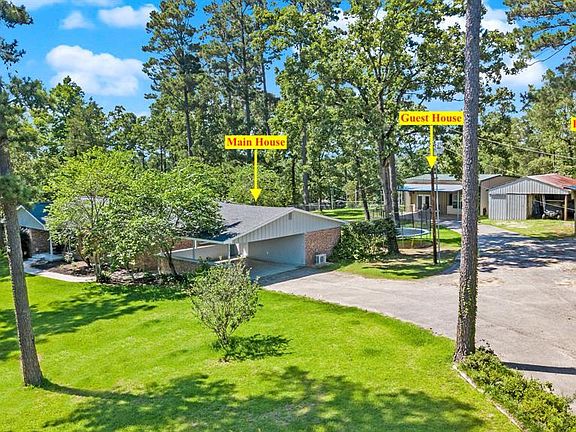 This unrestricted 4-Acre property contains a fully renovated 1-story main home, a 1,050 sq ft Guest House w/ fully fenced-in backyard, TWO (2) storage sheds (one of which is fully insulated w/ recessed lighting) and covered RV/Boat parking...all nestled below towering trees surrounding the entire property! The main home has a brand new Mud/Laundry Room w/ a new Full Bath (3 Full Baths total in main home & 4 Bedrooms). New double-pane windows, new ceramic "wood-look" tile floors, fresh interior paint, new carpet in bedrooms, new modern linoleum flooring in all bathrooms & mudroom, remodeled bathrooms, sliding barn doors, recessed LED lighting, SS appliances, & more. "Bug-be-gone" spray system around perimeter! The Guest House has it all...a large, covered carport, open Living & Kitchen area, a spacious bedroom w/ full bath, a washer & dryer (stays), & closet. See "Features & Upgrades" doc and photo captions for more details. Minutes to Lake Livingston and the main part of town!
