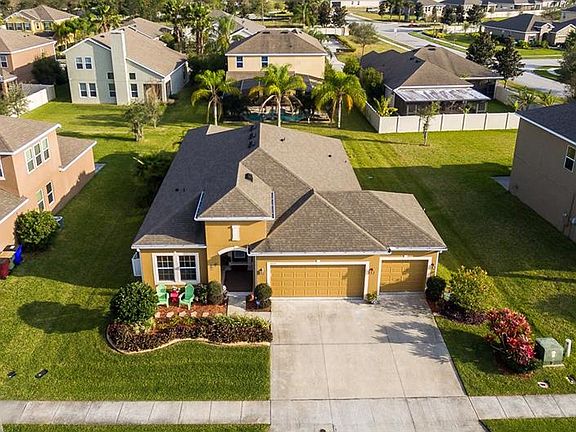 SHOWS LIKE A MODEL! Seller spared no expense in this gorgeous 4 bedroom home to include many upgrades. Beginning with an impressive curb appeal, enter through a beveled glass door and be pleased with custom paint colors throughout, volume ceilings, 18" ceramic tile, and decorative trim molding in Foyer / Hallway. Beautiful rich cherry wood cabinets with molding / hardware, granite counter tops, mosaic back splash, under sink filtration, combined with stainless steel appliances make this Kitchen a chef''s paradise. Separate Dining area and island for casual meals. This open floor plan has a seamless flow that is not only perfect for every family but is fantastic for entertaining. Spacious Master suite complete with upgraded carpet, walk-in closet, cherry wood vanity, under mount dual sinks, Marlique marble top, soaking tub, separate shower, and upgraded tiling. Secondary bedrooms features custom paint/decor and upgraded carpet. Take time to unwind on your covered, screened lanai and enjoy the lush landscaping. This popular community is convenient to shopping, restaurants, and FL Turnpike. Don''t wait...call for a private showing TODAY!