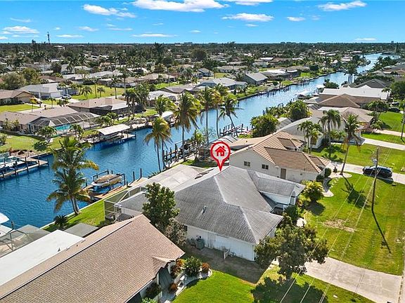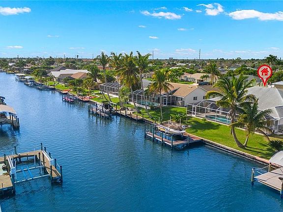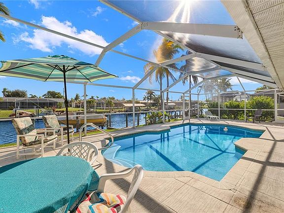Welcome to an absolutely stunning pool home very meticulously maintained - DIRECTLY ON THE CANAL WITH GULF ACCESS - in one of the nicest and best neighborhoods of Cape Coral. Very LOW MAINTENANCE cost due to solar panels which heat the pool, lower the electic bill substantially, no HOA fees, etc. The private dock features a 10,000-pound boat lift and provides you access to the Gulf of Mexico. Just 3 beautiful miles away (a 35-minute journey), you'll reach the Gulf! This very nicely and appealingly upgraded home features 3 spacious bedrooms with beautiful water views. This can either be your perfect all-year-round residence or an outstanding investment opportunity with excellent rental income. The house comes furnished, ready for you to move into Florida's paradise and start an active, very relaxing and happy lifestyle! Enjoy the morning sun and take a nice refreshing swim in your solar heated saltwater pool to start a great day, dry off with a cup of coffee on your pool deck, and get ready for an amazing day in the best location! In the evenings, enjoy entertaining friends for dinner on the spacious screened lanai, overlooking the water. Perhaps even hop on the boat for an evening ride! This home ensures you "Sleep Well At Night" (an excellent SWAN investment): With its elevation and excellent location, plus the fact that it is not in a flood zone and has never experienced any flooding ever, there is nothing to worry about! It is hurricane safe, very well maintained and even the solar panels still have a 10 year warranty. The shingle roof is only 7 years old and in excellent shape, and solar panels have been added to heat the pool and still have a 10-year warranty. The solar energy lowers your electrical cost! Also, the lanai screens were recently replaced. If you want to enjoy a good lifestyle, this is it! Excellent price for the value you get! This home has also never been leased out, ensuring it is in excellent condition! Excellent SWAN investment opportunity with no headaches! Enjoy the best lifestyle of Florida in Cape Coral's best location - ready to move in and hop on your boat!