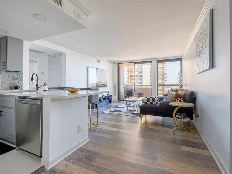Discover this stunning unit at 3525 Sage! This 1-bedroom, 1-bathroom condo features a spacious open floorplan that effortlessly combines the living, dining, and kitchen areas for seamless entertaining and everyday living. Enjoy the convenience of a refrigerator, washer, and dryer included with the unit. The galley kitchen boasts granite countertops, a generous breakfast bar, and modern stainless steel appliances. The warm wood-like engineered flooring enhances the inviting atmosphere. Step out onto the balcony to take in views of Williams Tower and the vibrant Galleria area. Recent updates to the building include fantastic amenities such as a resort-style pool with outdoor grills and cabana, a gym, a game room, a library with computer access, concierge services, and a secure parking spot. Ideally located just minutes from The Galleria and a variety of dining options!