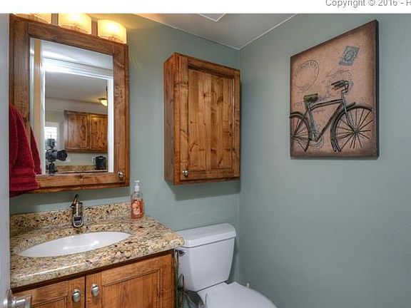 Comfort! Central Air, Heated tile flooring in kitchen and master bath, ceiling fans. Stainless steel appliances, water purifiers, granite counters. Washer and Dryer included. Completely landscaped. New Carpet. Plantation Shutters. Pikes Peak View from Back Yard Deck with Hot Tub,