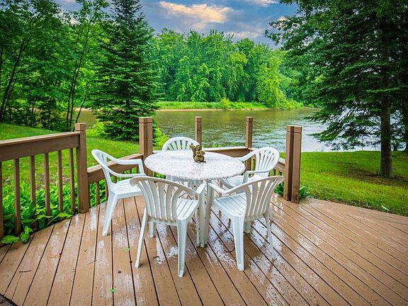 Awesome spot on the Muskegon River - three lots with 300' of swimmable waterfront and a dock. This adorable ranch home has an updated wing built in 2004. The original building built in the 1950's can serve as separate guest quarters or an extension of the home. The original has two bedrooms, large family room, bath and laundry. The addition has a master bedroom, guest bedroom or office space, large open concept living/kitchen/dining with beautiful window views of the river. This great spot on the river and has a beautiful yard and wooded area on this 1.89 acre parcel. Water source is an artesian well. The riverfront is swimmable with a nice sandy beach and dock. Wonderful firepit area, patio and deck. Large 24x26 garage with wood burning heater. A must see waterfront property!