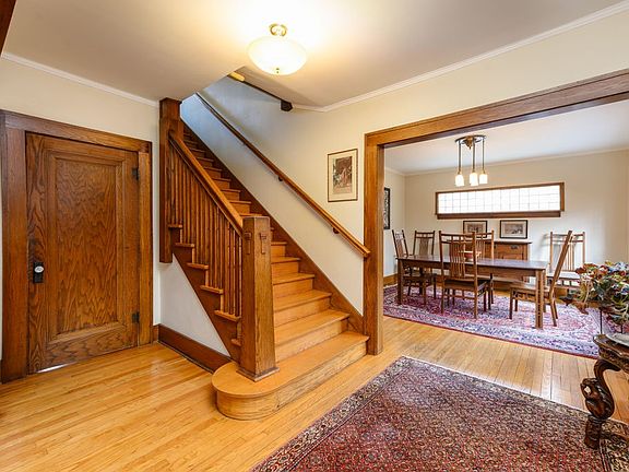 This exquisite Craftsman-style home, nestled against Witmer Park, boasts original hardwood floors, beautiful windows, and distinctive built-ins. Lovingly maintained by a small group of owners over the years, this home radiates charm and character. The spacious living room, featuring a stunning fireplace that spans its width, serves as the focal point of the main level, offering an inviting atmosphere. There are countless cozy spots throughout, from the living room to the adjoining sunroom, perfect for unwinding. At the opposite end of the main level, the formal dining room is highlighted by a charming swinging door that leads to the fully remodeled kitchen. Here, you'll find sustainable Marmoleum/Forbo commercial flooring, quarter-sawn oak custom cabinetry, a stove with a warming rack, upscale appliances, and a built-in desk—just a few of the unique touches that make this kitchen both functional and beautiful. The delightful office and 3-season room off the kitchen are sure to impress as well! Upstairs, four generously-sized bedrooms await, with a striking wrap-around built-in bookshelf that immediately catches the eye. These thoughtful details showcase the home's exceptional character. The lower level has been recently renovated, including an impressive laundry room, updated bathroom, and modernized electric and plumbing. To top it all off, the outdoor space is just as spectacular, featuring patios, a garden shed, and mature landscaping backing to tennis courts and the park!