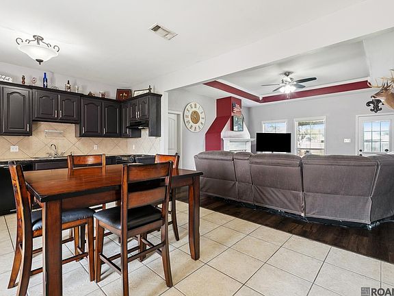Welcome to this charming 3-bedroom, 2-bath home located in the desirable Ott Acres subdivision of Denham Springs. Step inside to find a spacious living room featuring beautiful laminate wood flooring, a cozy wood-burning fireplace, a tray ceiling, and a bright, inviting interior. The kitchen offers custom cabinetry with ample storage, an electric cooktop, tile countertops and backsplash, and a spacious dining area, ideal for family meals or entertaining friends. All bedrooms are generously sized with abundant closet storage. The master suite includes double vanities and a tub/shower combo for convenience and comfort. Enjoy outdoor living under the extended covered patio overlooking the large, fully fenced backyard. A storage shed is located on the side of the property, perfect for tools and equipment. This home has been meticulously maintained with major updates, including a new roof and hot water heater in 2024, and HVAC system upgrades with the inside unit replaced in 2020 and the outside unit in April 2025. Don’t miss the opportunity to own this move-in-ready home in a quiet, established neighborhood!