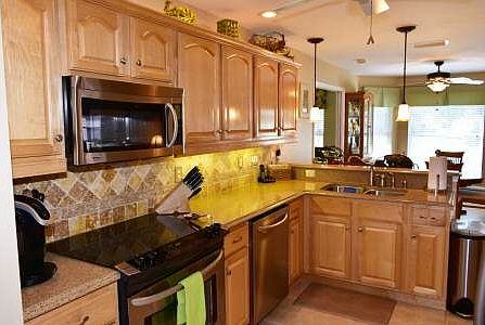 This home has so many extras & upgrades & is situated on large beautifully landscaped corner lot that is within walking distance to the clubhouse & golf course. Nice size rooms throughout & plenty of storage too! There has been much updating done & shows like new! Enjoy the large living room with vaulted ceiling & is open to the lanai/enclosed rear porch. The kitchen offers wood cabinets, quartz counter tops, stainless steel appliances, tumbled stone backsplash & includes 2 large pantries. The master suite also has vaulted ceiling w/ lighted plant shelves, 2 walk-in closets & updated Bath w/new tiled shower, decorative trim around vanity & new lighting & mirrors. Your guests will be welcomed with a large guest bdrm & bath & also includes a 3rd bdrm presently being used a s a den/office. There is plenty of room for parking & entertaining w/wide painted drive & oversized painted patio to the rear. The A/C was replaced July 2016 w/ 3 ton Trane Heat Pump system. Also included is a emergency generator w/ sep. electric panel & outside plug-in box as well as a solar powered attic fan. All windows have been tinted for added heat & cold control. This one you must see to appreciate all the extras included! Hurry on this one!