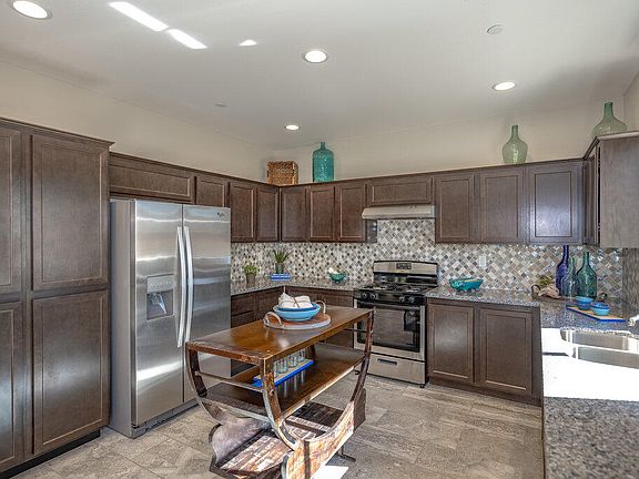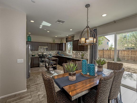 Welcome to this highly upgraded and well decorated model home! The gorgeous kitchen features dark cabinets with granite surfaces, custom backsplash, large work area and stainless appliances! The kitchen and large dining area are open to the spacious family room with fireplace. There is also an open and bright, large living room. Custom upgraded flooring throughout with decorator touches including custom paint, extensive recessed lighting and many more features you need to see! Upstairs you will love the 4 bedrooms and 2 full baths that continue with custom designer paint and decorating. Large primary suite features gorgeous en suite bath with separate tub and shower. Large laundry room with cabinet. Attached 2 car garage, full water efficient landscaping front and rear will save you money and are already complete! Energy efficient tankless water heater, you are going to love this home! Schedule an appointment to see this one today.