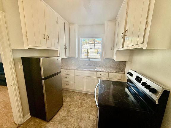 Comfortable maintained home with 3 bedrooms and 1 bath. Interior features a blend of carpet and vinyl flooring creating a warm environment. The kitchen comes with an electric range, ready for everyday cooking. Outside, you'll find an oversized and detached 2-car garage for parking and storage space along with a fenced yard for added privacy. Cat-friendly