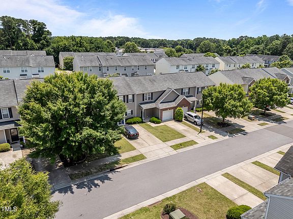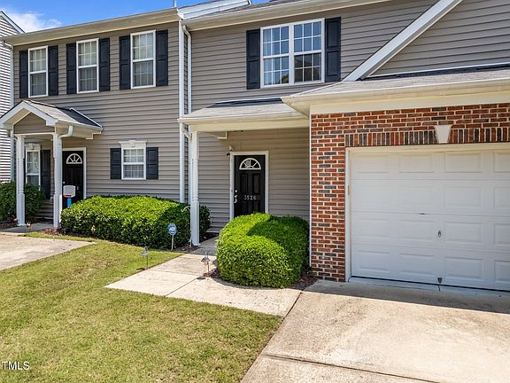 Ready to fall in love with your first home? This stylish 3-bedroom townhome is the whole package! Beautiful new hardwood floors, new carpets, an open layout, trendy fixtures, and ZERO yardwork with exterior maintenance and landscaping included. Step inside and enjoy the high ceilings, cozy fireplace, and plenty of natural light. Upstairs you'll find three bedrooms and two full bathrooms. The spacious primary suite has cathedral ceilings, a walk-in closet, double vanity, and a dreamy garden tub. A convenient half bath is downstairs, and the 1-car garage adds bonus storage or parking. Love the outdoors? Sip your morning coffee on the covered front porch or unwind and enjoy the breeze on the private back patio. And last but not least... an amazingly convenient location! Just minutes from 440, 540, and everything the Triangle has to offer. This home is ready and waiting for you!