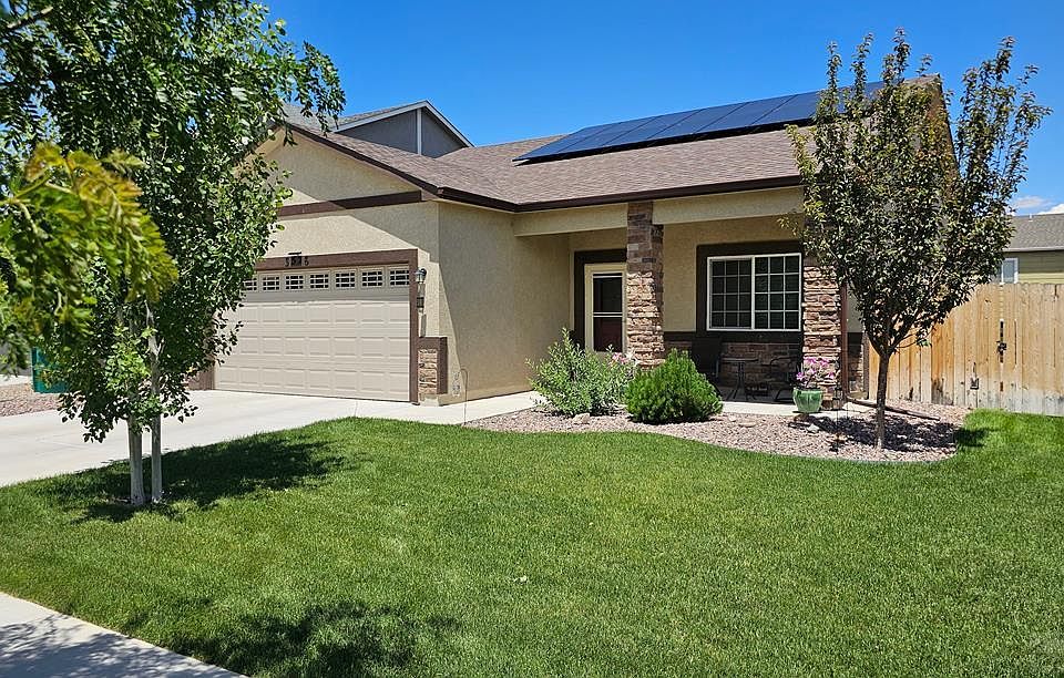 Better than new! This home was built in 2020 and is the full package with nothing for you to do but move in and enjoy it! Seller had solar installed ($30,000 system) and currently Electric runs only $12 per month! What a great bonus for the lucky buyer. Seller also installed beautiful landscaping front and back. Backyard has a patio, lush green grass and a horseshoe pit! High quality window coverings. The floorplan is an open concept with nearly 1500 SF. Center Island in kitchen with a large pantry. All Kitchen appliances are included. Refrigerator and Gas Range are upgraded. Spacious Master with walk in closet. 5 piece master bath with walk in shower, and a deep soaker tub. Laundry room off of the 2 car garage. Tankless hot water heater and a 95 % efficient furnace. Nice location on a quiet dead end street.